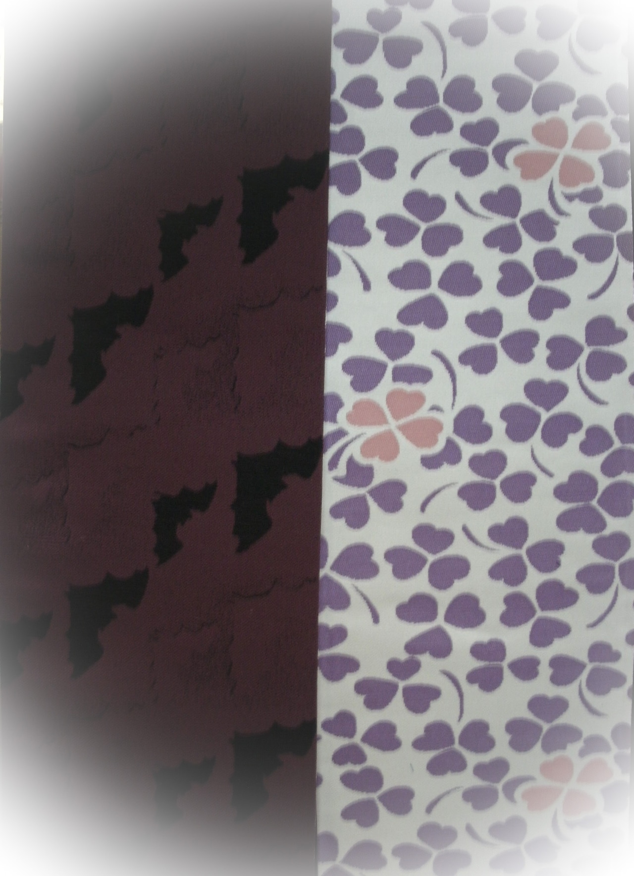 クローバー柄 白よごし地/紫×ワイン