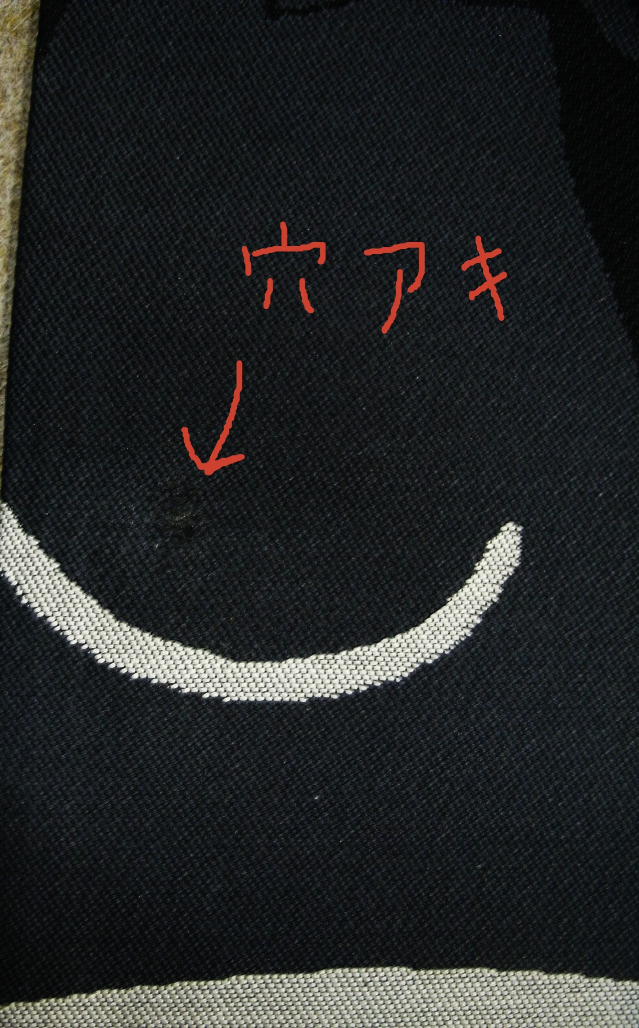 巴ネコ柄に小さな穴あきがあります(小)