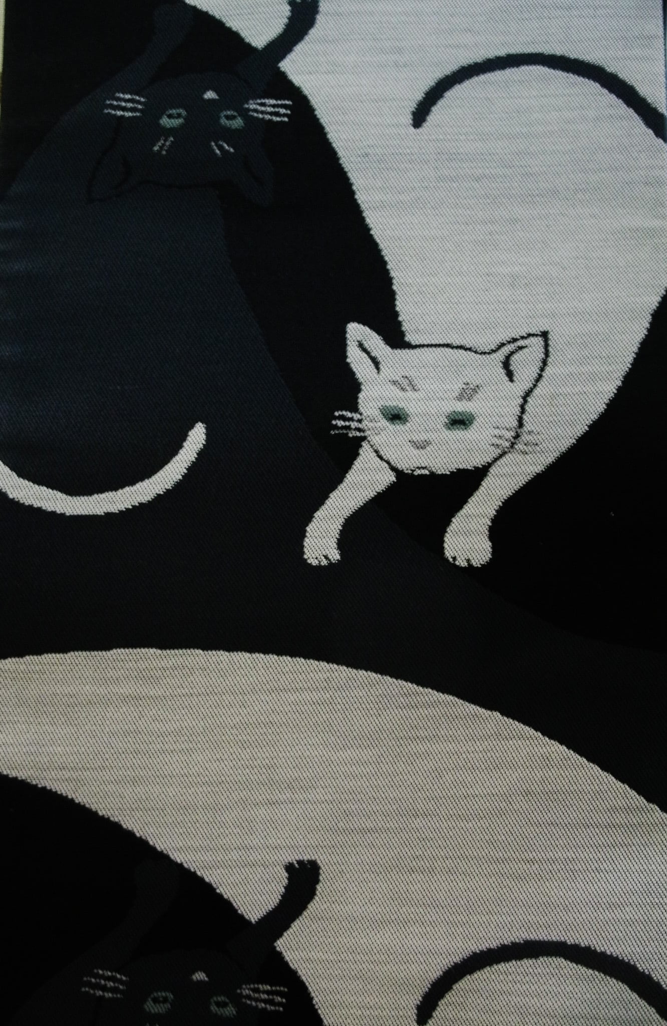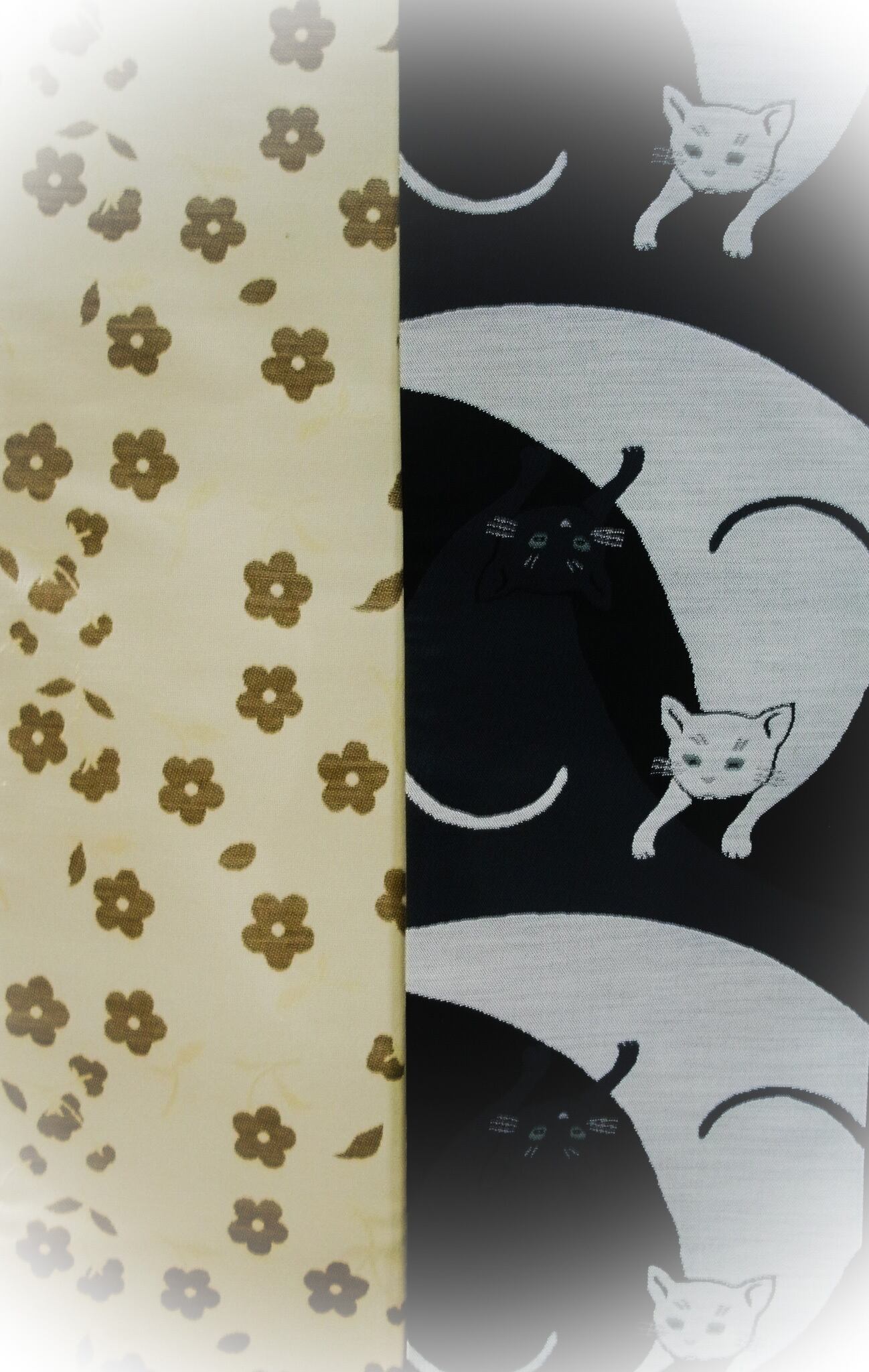 巴ネコ柄 墨黒地/白