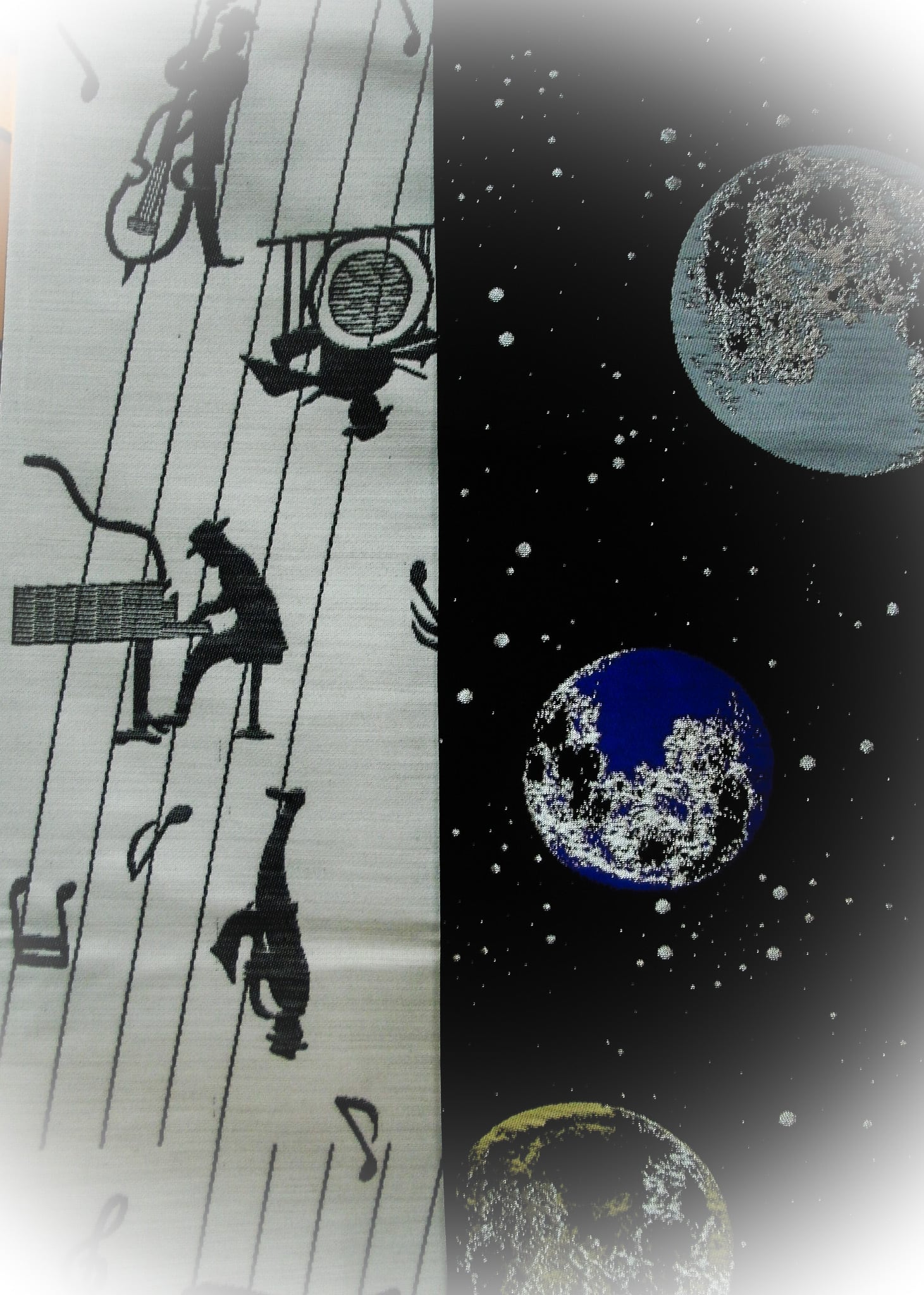 宇宙柄 黒地/銀糸×紫×ブルーグレー×ウス黄