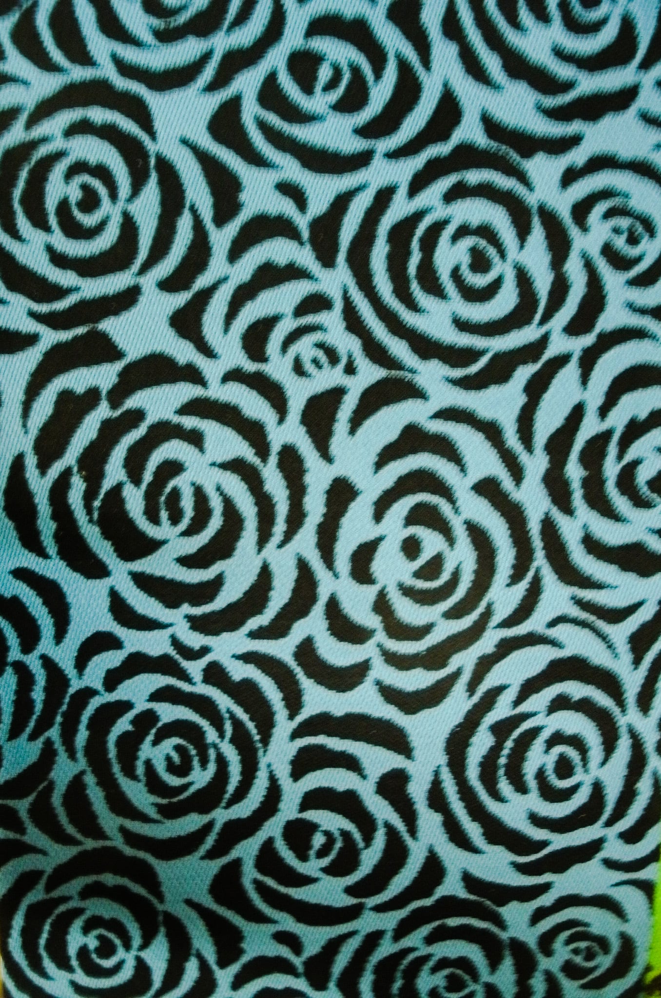 バラ柄 黒地/青